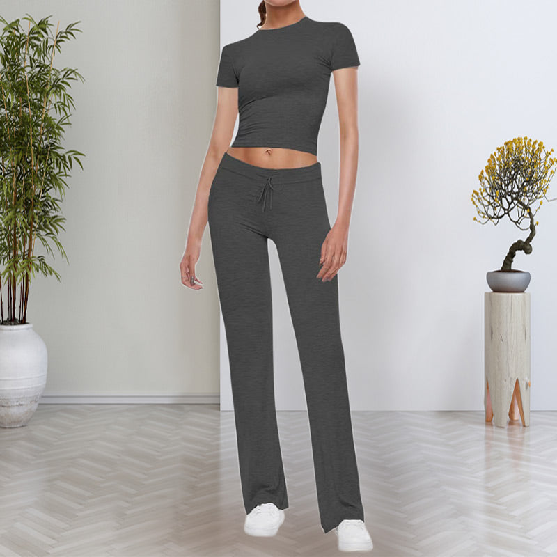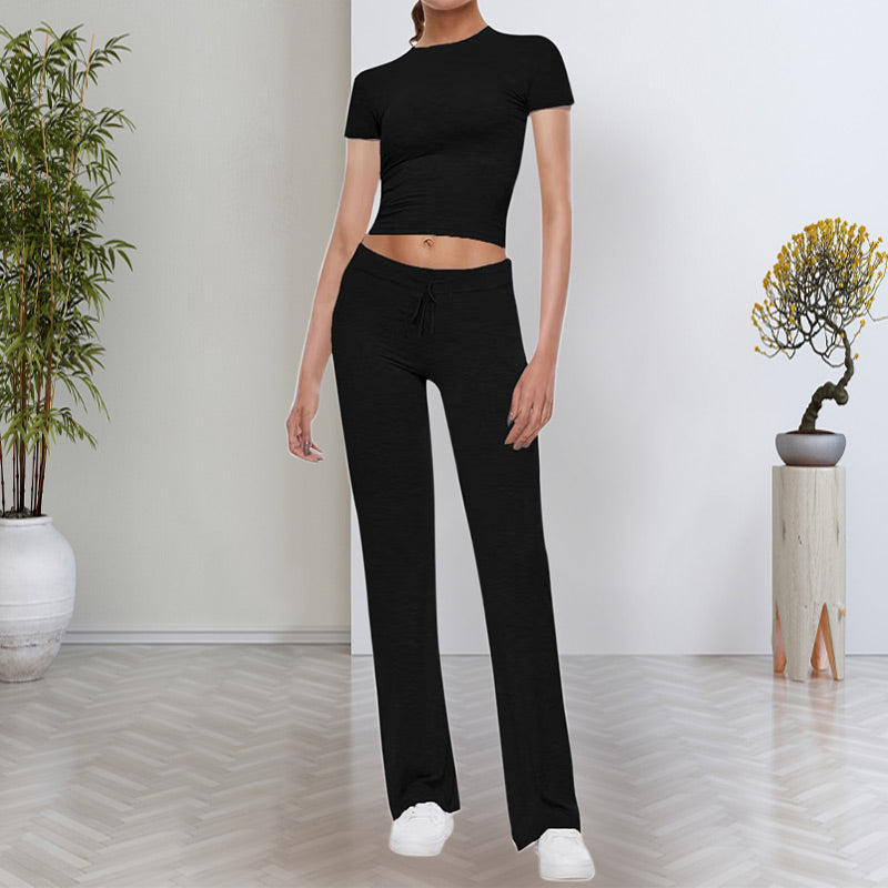 CLASSIC DESIGN: The solid color t-shirt features a simple yet chic design with a crew neckline and short sleeves, while the straight-leg pants offer a sleek, flattering silhouette.