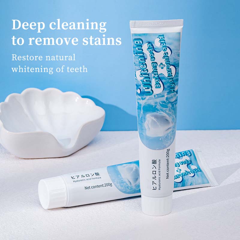 KIRKASTAA HYMYÄSI LUONNOLLISESTI - Kuvittele kirkkaampi ja itsevarmempi hymy tervehtimässä sinua joka aamu. Tämä hammastahna käyttää ruokasoodan hellävaraista voimaa poistaakseen jokapäiväiset tahrat ja paljastaen hampaidesi luonnollisen hehkun ilman voimakkaita hankaavia aineita. Se on kuin virkistävä kiillotus, joka antaa säteilevän, terveen näköisen kiillon ja saa hymysi tuntumaan raikkaalta ja uudelta.