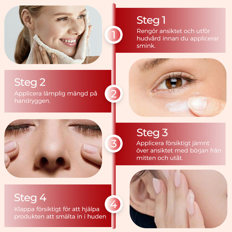 בניית שלמות בצעד אחד - המרקם הקרמי נמס במגע ומספק כיסוי מלא בקצות האצבעות בלבד. ניתן להשתמש מתחת לעיניים, על פגמים או על כל הפנים לקבלת תוצאה אחידה תוך 10 שניות.