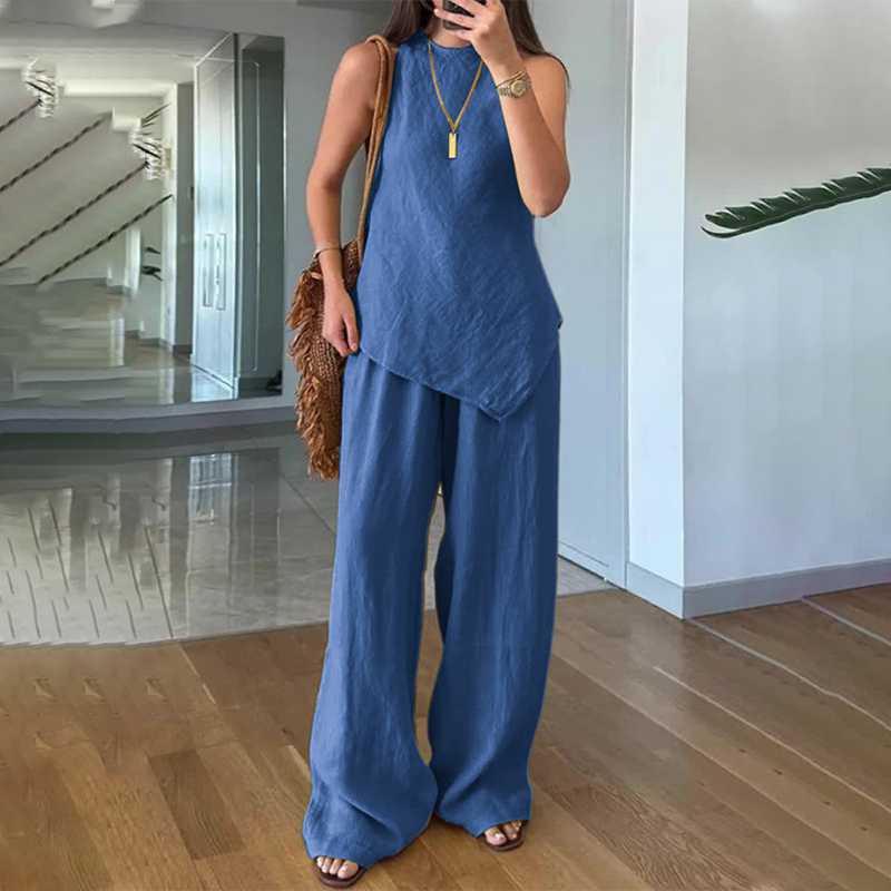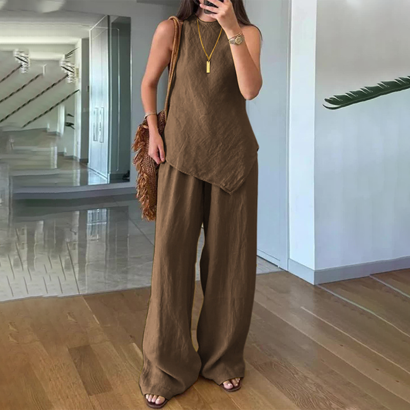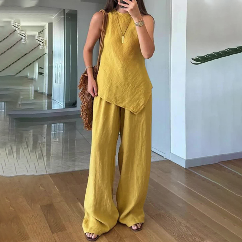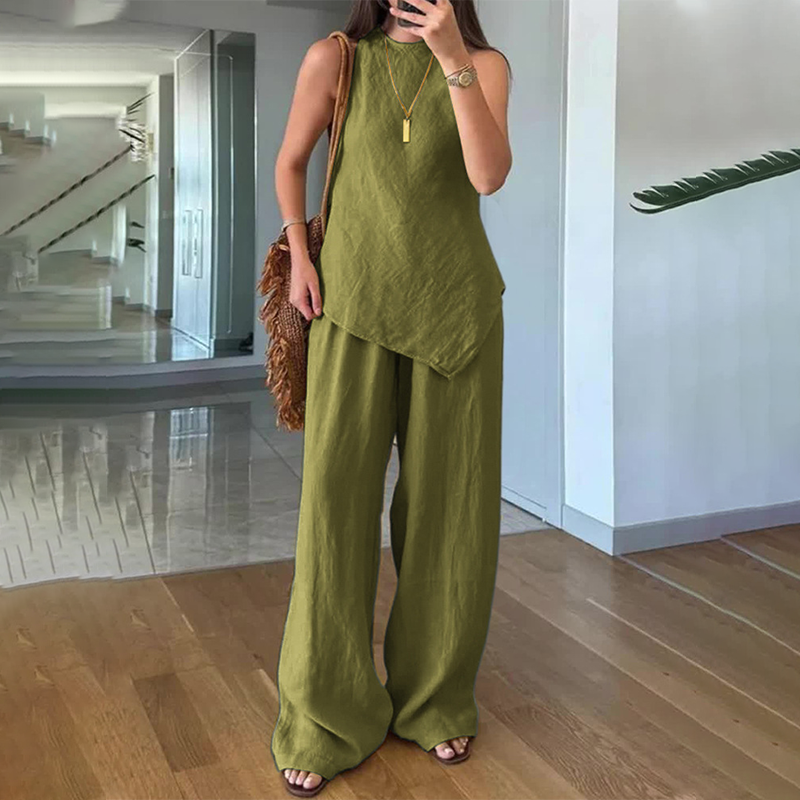 Vestibilità rilassata & DESIGN VERSATILE – I pantaloni larghi e fluidi abbinati alla canotta senza maniche creano una silhouette rilassata ma elegante. Questo completo può facilmente trasformarsi da un comodo outfit da interno a un elegante completo da esterno.