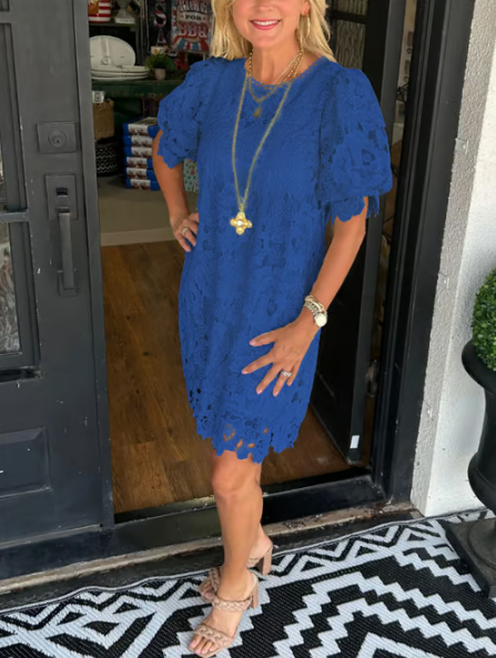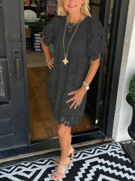 Elegante e raffinato, il nostro mini abito in pizzo floreale naturale è l'aggiunta perfetta al tuo guardaroba.🌷🌷