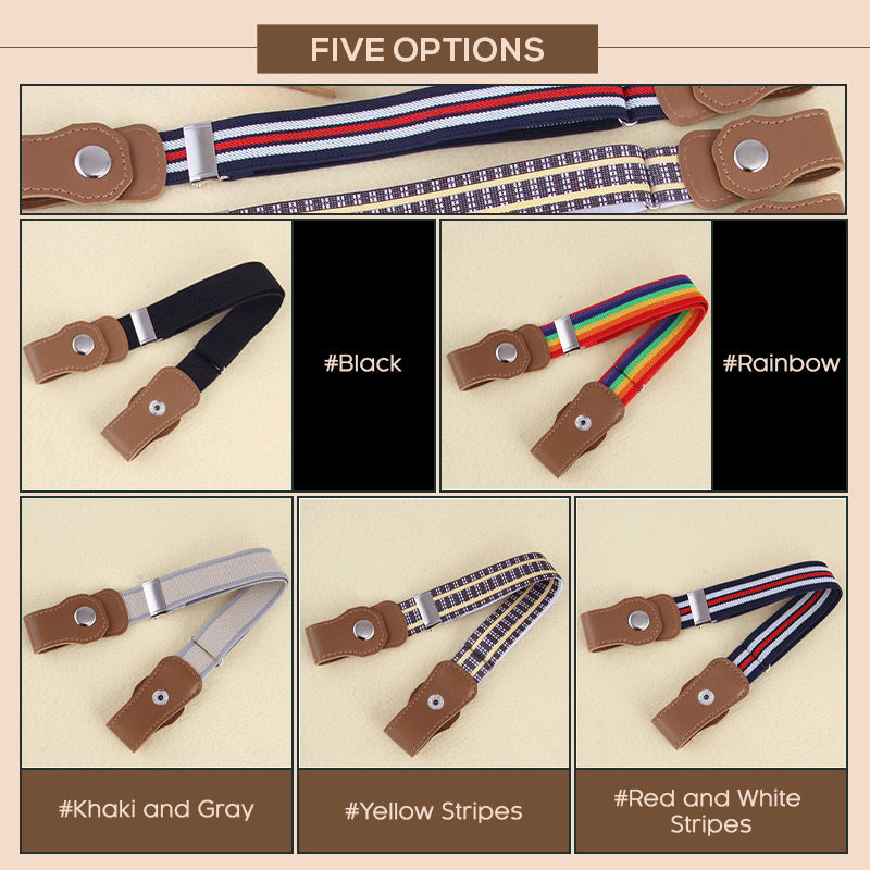 The No Buckle Belt is made of an elastic band and PU material, with fine workmanship. The stretchy elastic belt lay flat on kids’ pants without any buckles digging into their stomachs. It’s an innovative way to secure children's pants.